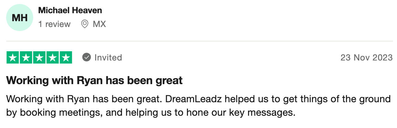 "Dream Leadz has been a game-changer for my agency, bringing in just over £85,000 worth of new business in just three months! Ryan and his team truly understood my needs and targeted the right prospects, providing top-notch leads and consistent sales calls. Their tailored approach and professionalism have been instrumental in my agency's growth. I can't recommend Dream Leadz enough for any agency owner looking to scale their business."